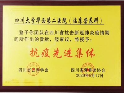 我院临床营养科获四川省营养学会“抗疫先进集体”表彰