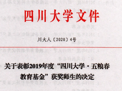 祝贺我院8位职工获“四川大学•五粮春教育基金”奖励