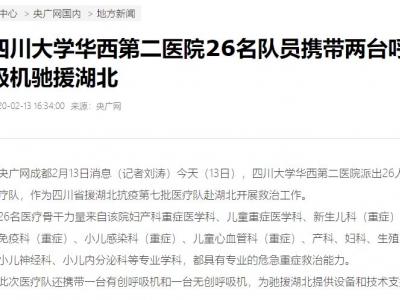 【央广网】四川大学华西第二医院26名队员携带两台呼吸机驰援湖北