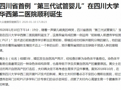 【四川在线】四川省首例“第三代试管婴儿”在四川大学华西第二医院顺利诞生