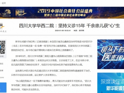 【新华网】四川大学华西二院:坚持义诊15年 千余患儿获“心”生