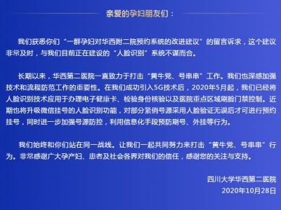 【四川观察】打击黄牛、串串 华西二院将启用人脸识别挂号