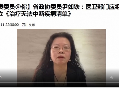 【代表委员@你】省政协委员尹如铁:医卫部门应组织专家建立《治疗无法中断疾病清单》