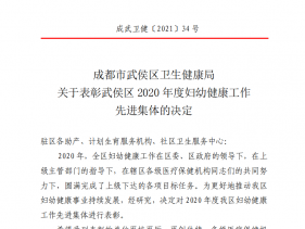 我院被评为武侯区2020年度妇幼健康工作先进集体